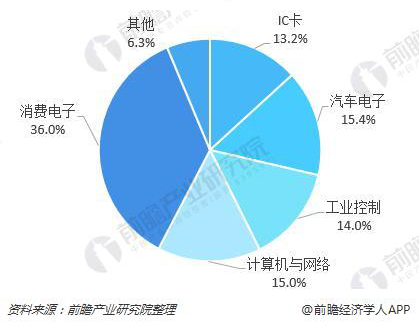 在2017年中國MCU的應(yīng)用市場中,消費電子MCU領(lǐng)域市場份額最高,為36.0%;上升較快的是汽車電子MCU,市場份額為15.4%,排在第二;排在第三的是計算機與網(wǎng)絡(luò)MCU,市場份額為15.0%。